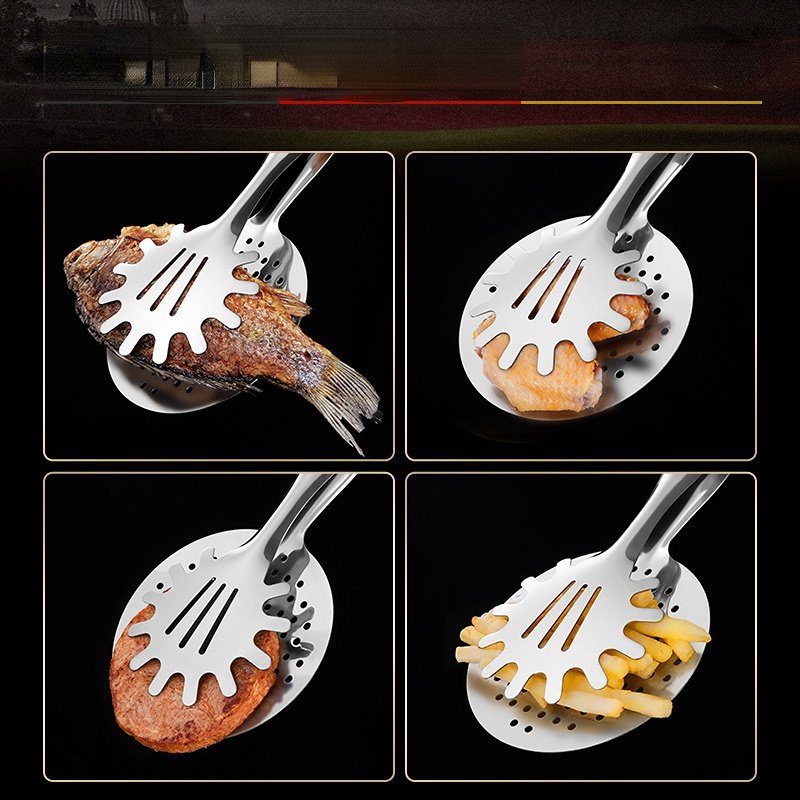 Home > 1pc Stainless Steel Fried Clip; Fried Fish Barbecue Steak Drain Food Clip
