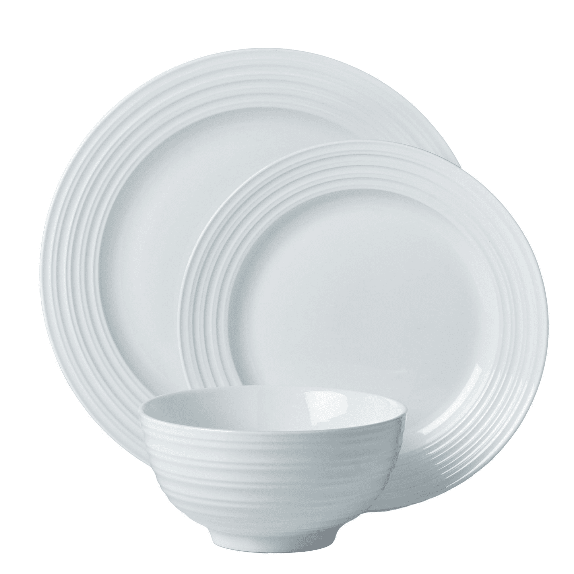 The Better Homes & Gardens Anniston 12Piece Porcelain Round Classic Dinnerware Set levels up any dining experience with modern appeal. The white glazed finish and simple, sleek lines create a big style impact that is sure to dazzle on any tabletop. What an easy way to take your dinner party style up a notch in one swift move. Offering service for four, this dinnerware set includes four dinner plates, four salad plates, and four cereal bowls. Crafted with 100% porcelain, this stunning set is both easy on the eyes and easy to care for. Plates and bowls are microwave safe to easily heat up leftovers, and dishwasher safe to make after-dinner cleanup simple.