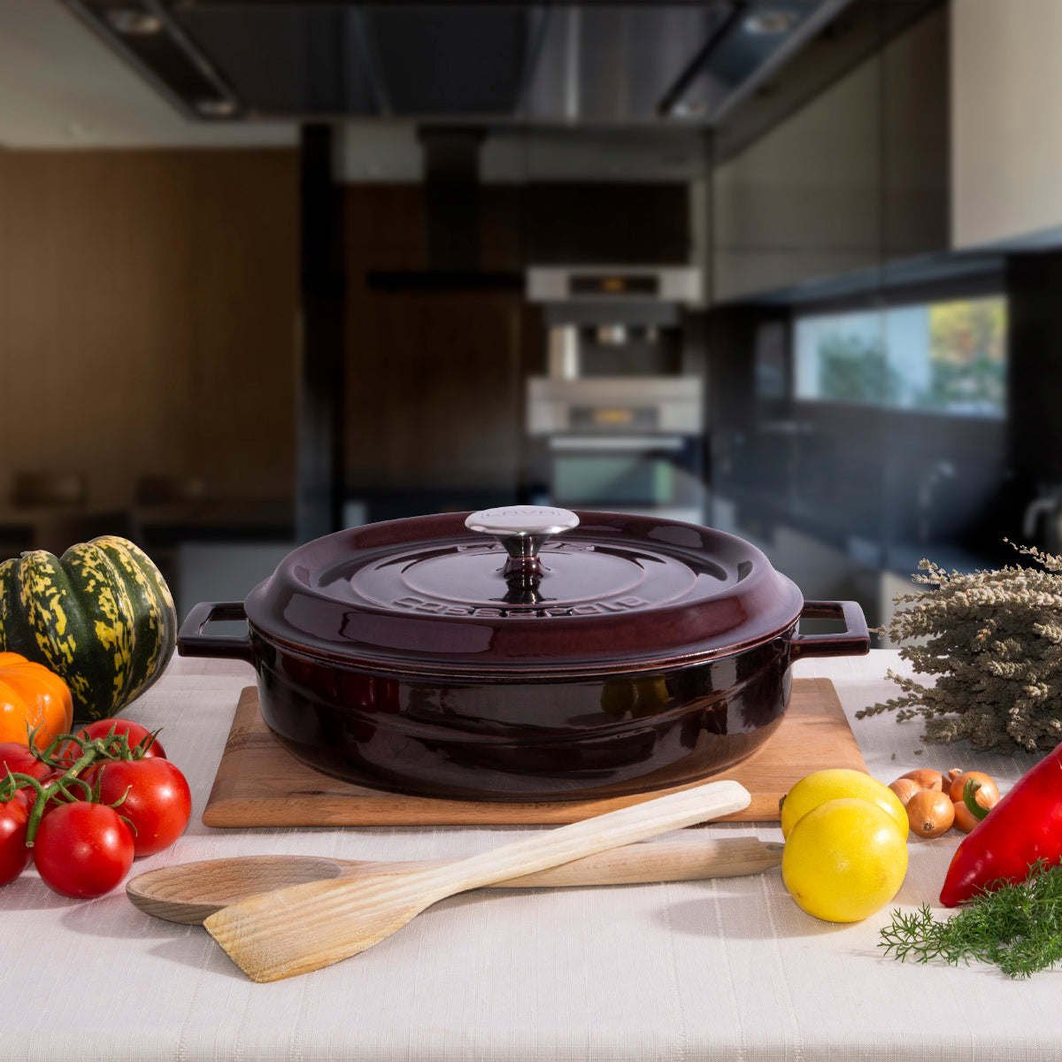 3-LAYER ENAMEL COATING: Lava cast iron dutch oven has been coated with 3 layers of enamel with 3 stages of firing technique. Primer layer protects the product against corrosion, gives resistance to high temperatures and thermal shock, the 2nd layer enamel gives high scratch and wear resistance and creates a flavor layer, 3rd layer enamel makes a smooth, attractive surface that is easily cleaned and adds a perfect elegance in presentation. PROTECTIVE GLASS ENAMEL: The cooking surface of this cast iron pot is glass enamel. Since this enamel shows the properties of glass, it has a transparent color, so the inner surface preserves its original casting color. Glass is a natural and a non-toxic coating that will protect the surface and maintain it for longer periods of time. Not only it makes this cookware versatile and easy to use but also gives a smooth and shiny surface that is both easy to clean and requires no seasoning before use. HEAT RETENTION: This dutch oven has 3.7-qt. capacity and it weighs 15 pounds with the lid. Its slow heat distribution and strong heat retention make it great for medium and low-heat cooking, from slow-cooking meats to roasting vegetables to boiling pasta, deep-frying, poaching, and almost any other cooking task you can think of. The smooth interior makes sure that everything inside is cooked evenly, and it releases food easily. It can be used on all kitchen stovetops (except the microwave), and it's oven safe to 500 degrees F. PRESERVES VITAMIN&AROMA: The special design lid offers a unique feature. Spikes on the Lava lids create a self-basting system, where the lid's spikes, flatness, weight and tight fit create a perfect environment for steam to rise, condense, and evenly drip back for more tenderness and flavor. This makes your food juicy, tender, and more flavorful. HOW TO CLEAN LAVA ENAMELED CAST IRON: Although Lava enameled cast iron is dishwasher safe, hand washing with warm soapy water and a nylon scrub brush is recommended to preserve the cookware's original appearance. Always dry cookware thoroughly and replace pot protectors between the rim and lid before storing in a cool, dry place. To remove stubborn baked-on food, boil 2 cups of water and 4 tablespoons of baking soda. Boil for a few minutes, then use a pan scraper to loosen the food