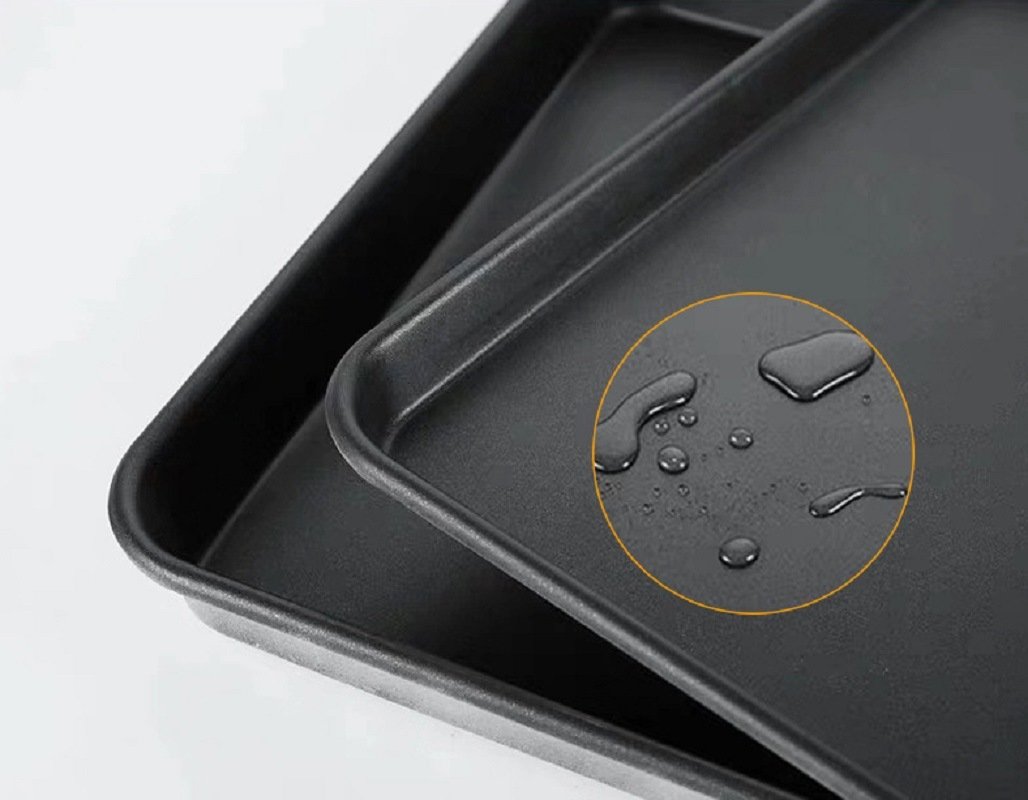 3.Made from carbon steel, the trays are finished with a non-stick coating which not only makes your cooking easier, but also aids the trays in being odor and stain resistant for easier cleaning.