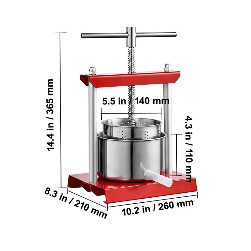 The fruit wine manual press is designed with an adjustable T-shaped handle for effortless and user-friendly operation.