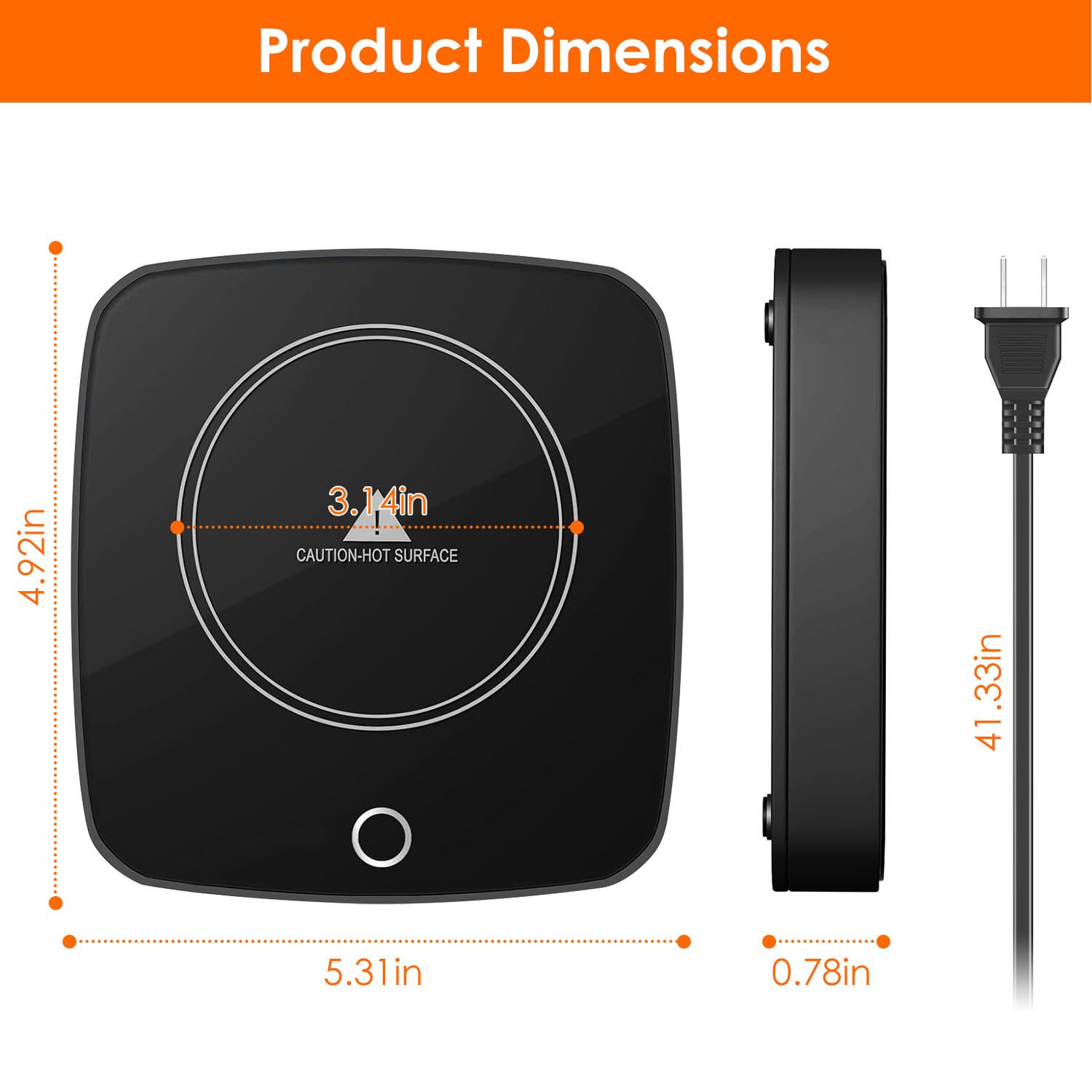 *Wide Compatibility*:With 3.14in diameter heating panel,this cup warmer is compatible with various types of cups,like glass bottle,stainless steel cup,ceramic cup. Made of sturdy and water-resistant ABS material,you can wipe the spilling liquid with soft cloth. And we recommend that the bottom of cup should be flat.