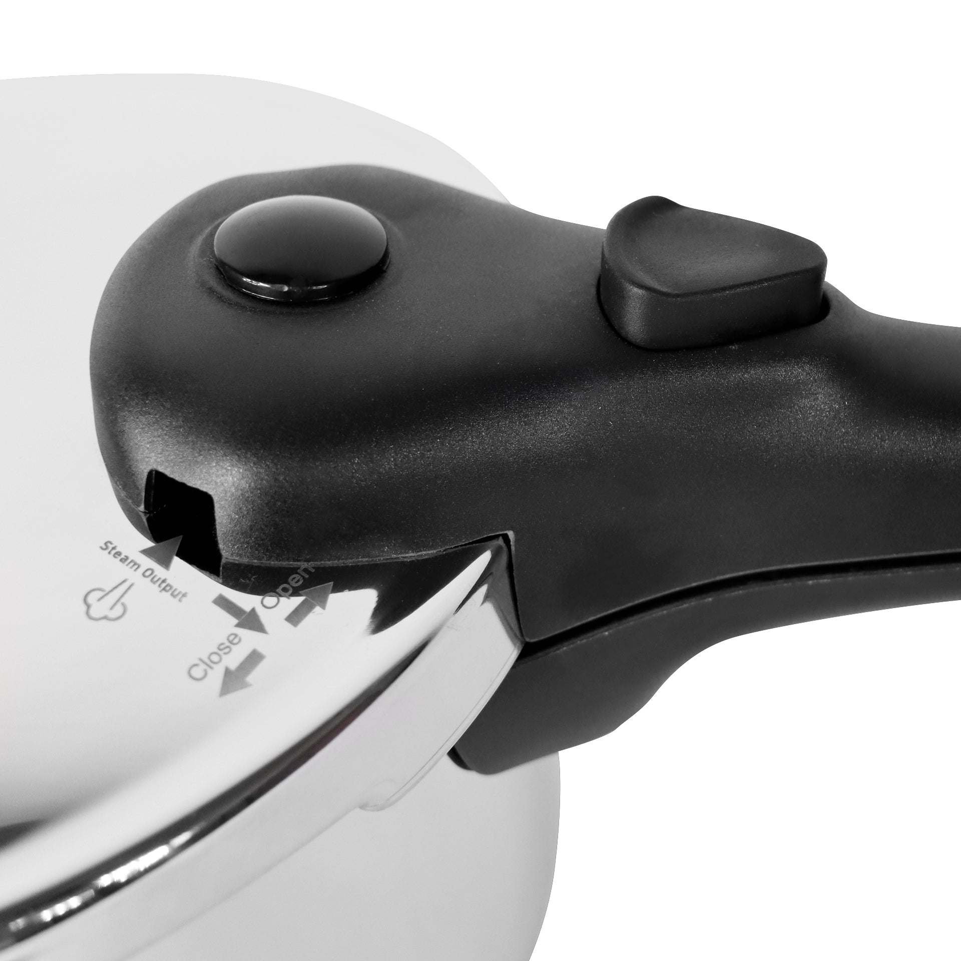 SUPER CAPSULE BOTTOM: The bottom features an extra thick capsule base. It allows for the quickest heat-up time, max. temperature control and rapid, even heat distribution. This pressure cooker has 3 temperature settings to allow for greater control over the amount of pressure you cook with. It is suitable for induction use.