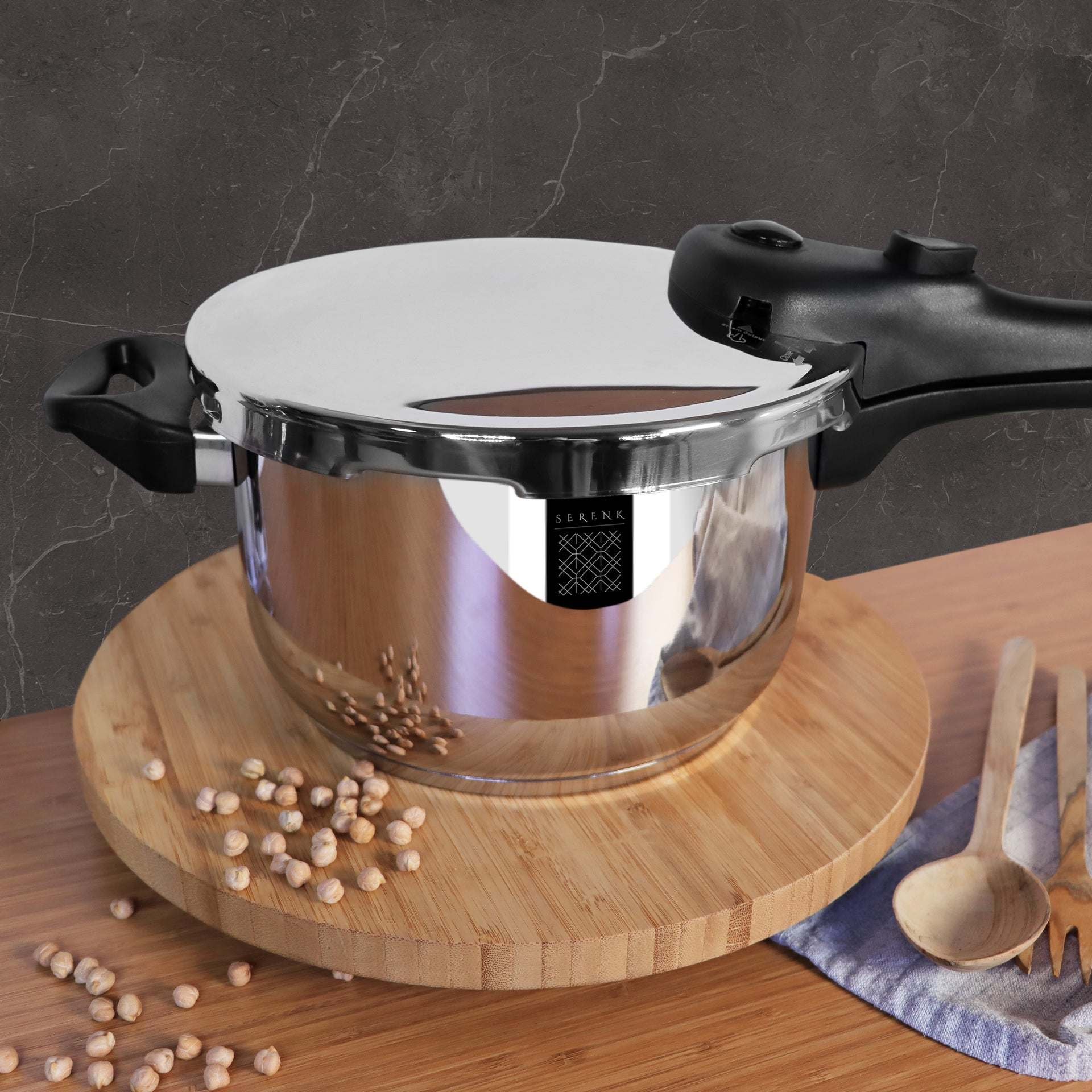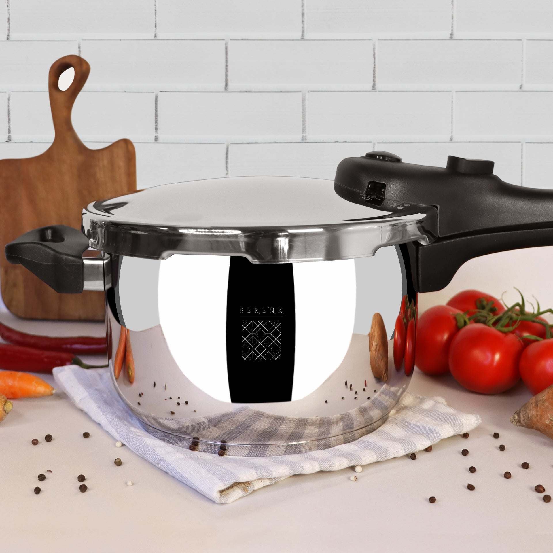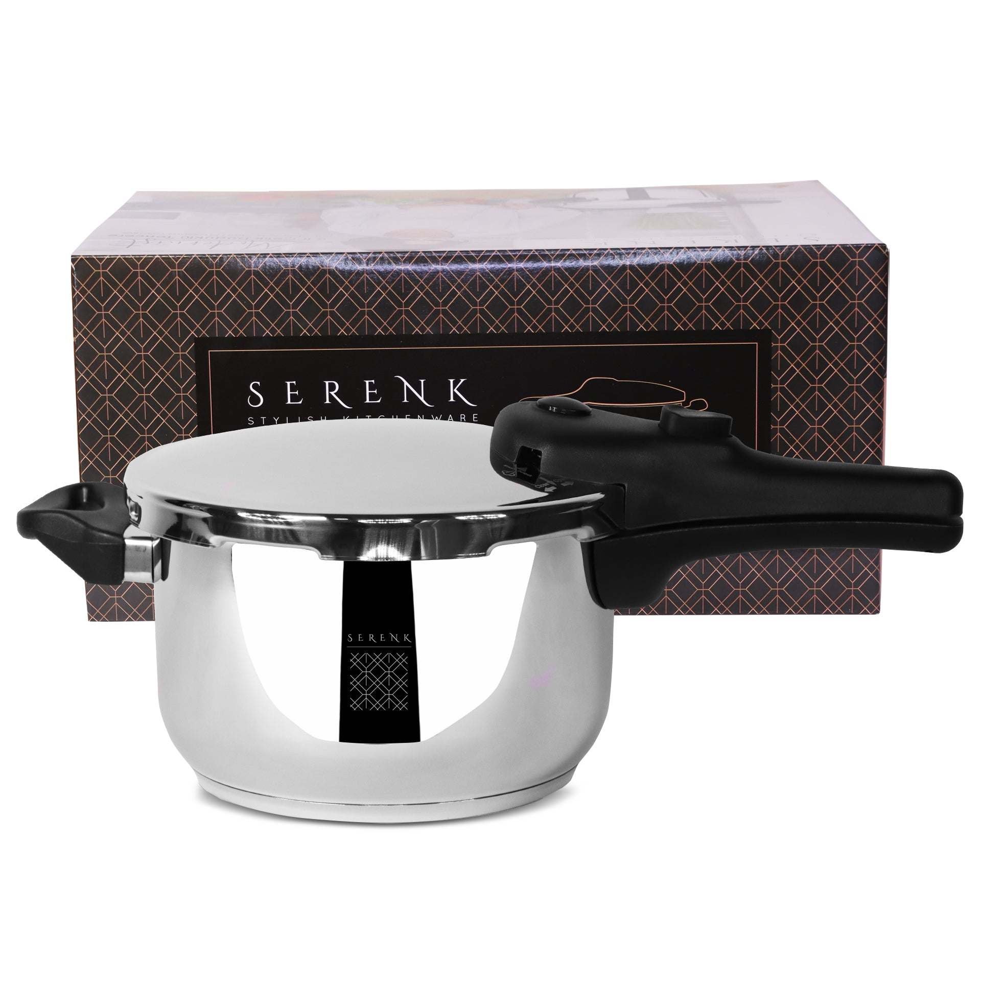 STAINLESS STEEL PRESSURE COOKER: Serenk pressure cooker is constructed of 18/10 stainless steel which exceedingly resistant to scratches, staining and will maintain its performance for a lifetime. Besides being durable, stainless steel is healthy, does not contain any toxic material, and is suitable for contact with food.