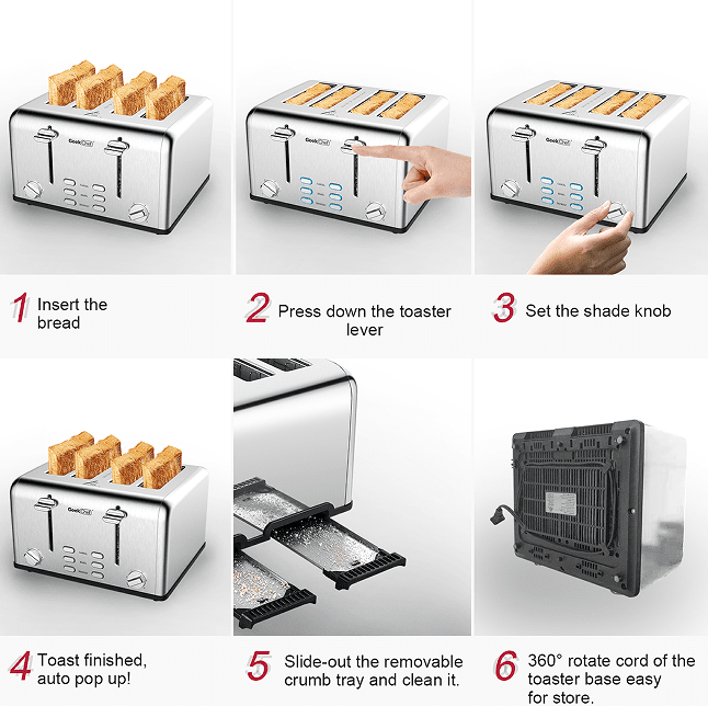 Dual independent control panel: Dual independent control panel it is equivalent to two toasters, prepare breakfast speed is twice faster than two toaster! Easy to clean with a removable breadcrumb tray!