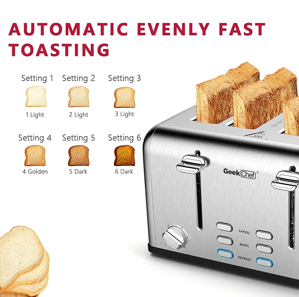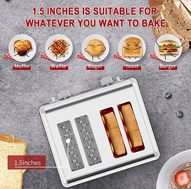 1.5-inch super wide 4-slot toaster: Ultra wide 4-slice toaster, thin bread, thick bagels, English muffins!
